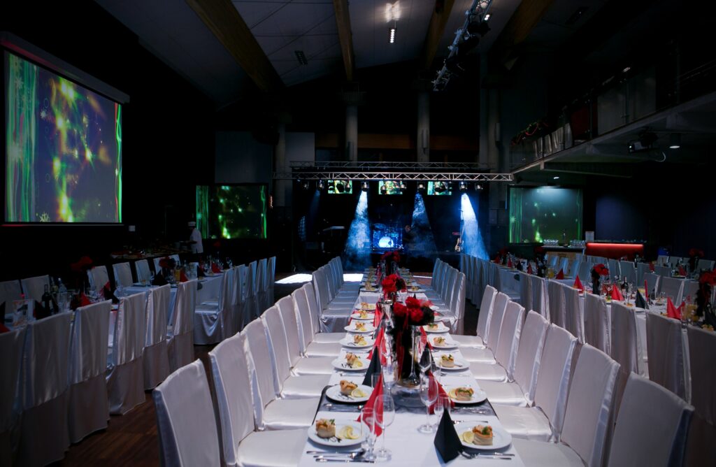 Zorganizujemy dla Ciebie wyjątkowy bankiet. Zaczynając od pomocy przy wyborze odpowiedniego miejsca, przygotowaniu scenariusza całego wydarzenia, profesjonalnym prowadzeniu przez konferansjera oraz odpowiedniej oprawie muzycznej i multimedialnej.